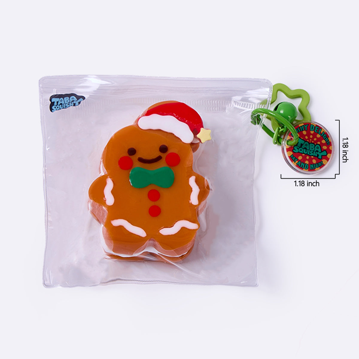 This handmade gingerbread man with christmas hat taba squishy made from food-grade silicone, features a soft, easy-to-squeeze texture with a smooth, creamy feel and slow rebound for deep relaxation, which is a perfect stress-relief toy for squeezing and squishing. With its vibrant colors and cute design, it comes elegantly packaged, perfect gift option to anyone you loved. Lightweight and portable, it’s perfect for stress relief on the go and can also be used as a fun keychain or backpack decoration.