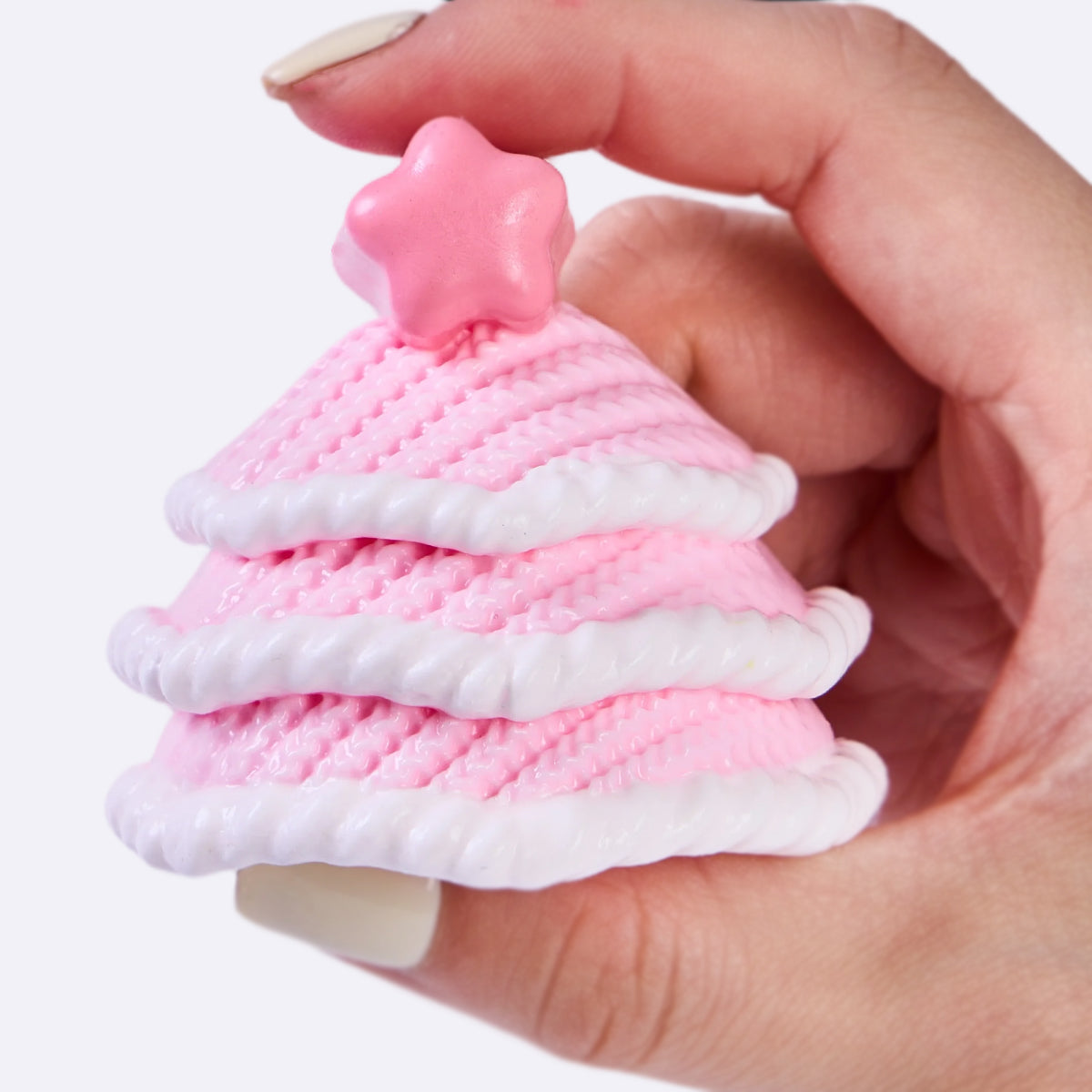 This handmade knitted pink christmas tree taba squishy made from food-grade silicone, features a soft, easy-to-squeeze texture with a smooth, creamy feel and slow rebound for deep relaxation, which is a perfect stress-relief toy for squeezing and squishing. With its vibrant colors and cute design, it comes elegantly packaged, perfect gift option to anyone you loved. Lightweight and portable, it’s perfect for stress relief on the go and can also be used as a fun keychain or backpack decoration.