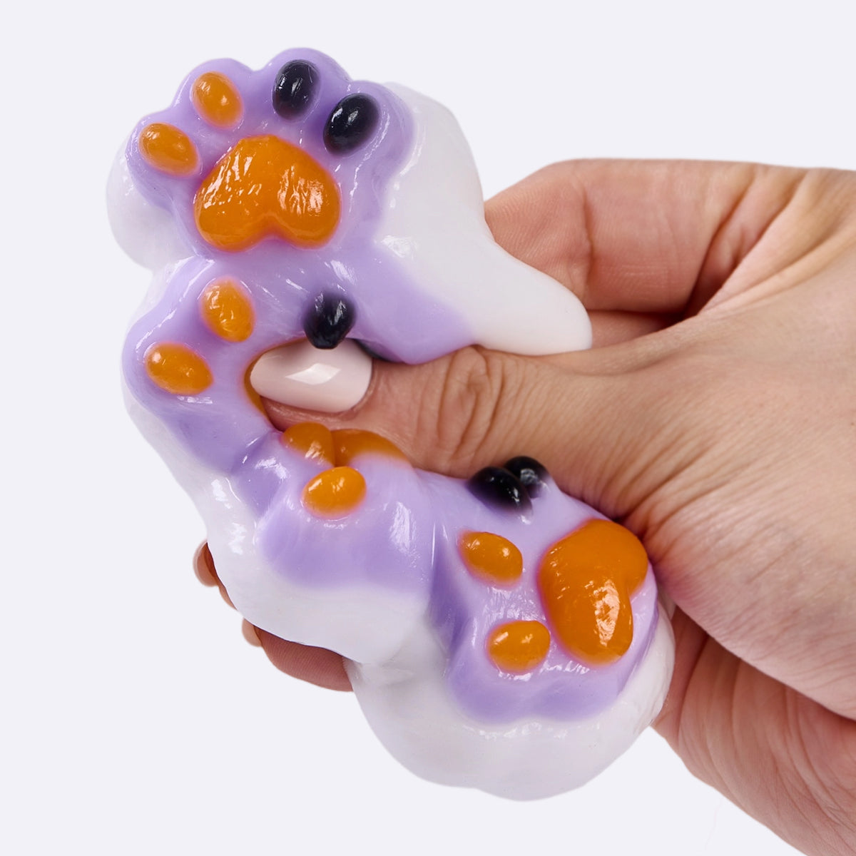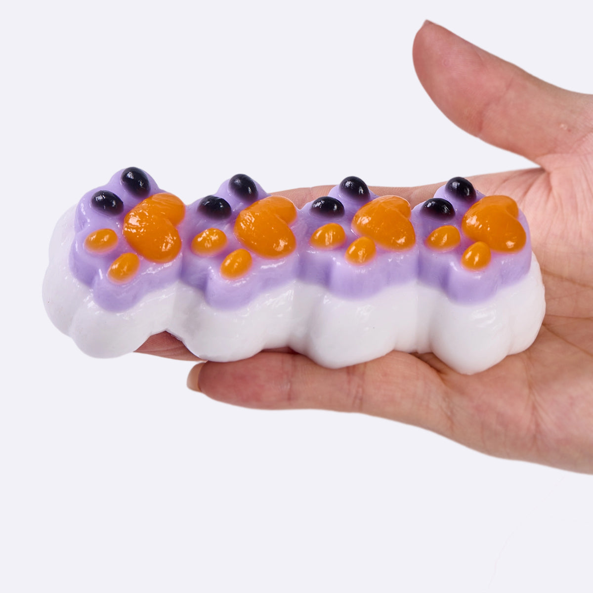 This handmade quadruple Halloween paw taba squishy made from food-grade silicone, features a soft, easy-to-squeeze texture with a smooth, creamy feel and slow rebound for deep relaxation, which is a perfect stress-relief toy for squeezing and squishing. With its vibrant colors and cute design, it comes elegantly packaged, perfect gift option to anyone you loved. Lightweight and portable, it’s perfect for stress relief on the go and can also be used as a fun keychain or backpack decoration.