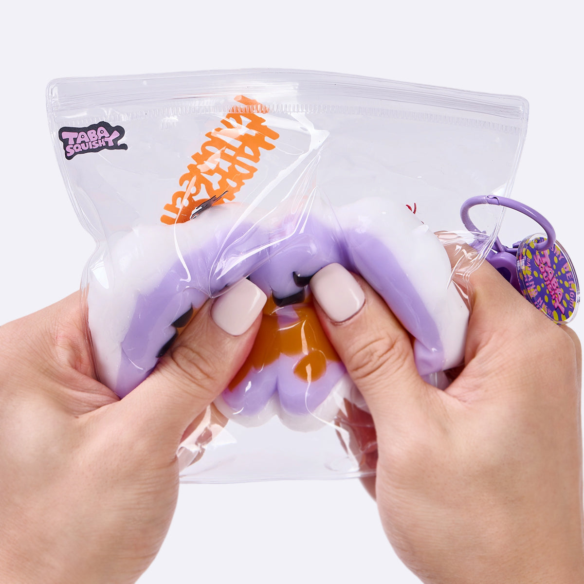 We recommend that you use the supplied food packaging bags to play with the toys. If you want to play with the squishies with bare hands, you can  put on disosable gloves before taking out to use it.