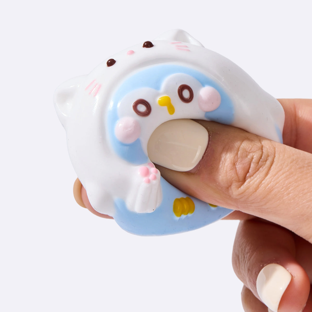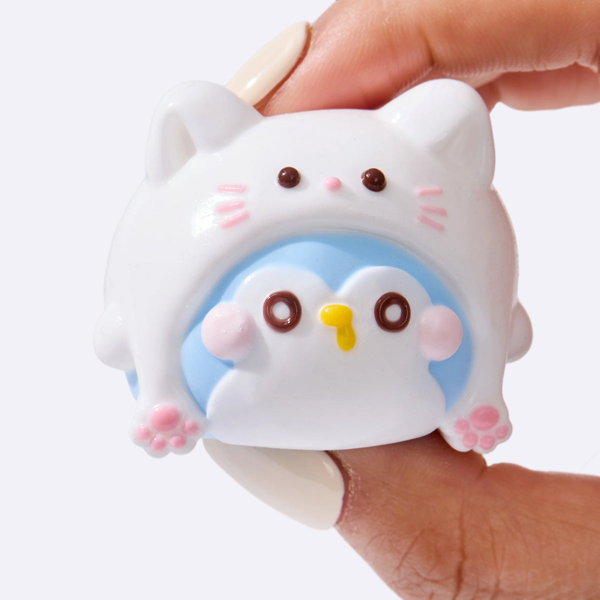 This handmade cute penguin with kitten hat taba squishy made from food-grade silicone, features a soft, easy-to-squeeze texture with a smooth, creamy feel and slow rebound for deep relaxation, which is a perfect stress-relief toy for squeezing and squishing. With its vibrant colors and cute design, it comes elegantly packaged, perfect gift option to anyone you loved. Lightweight and portable, it’s perfect for stress relief on the go and can also be used as a fun keychain or backpack decoration.