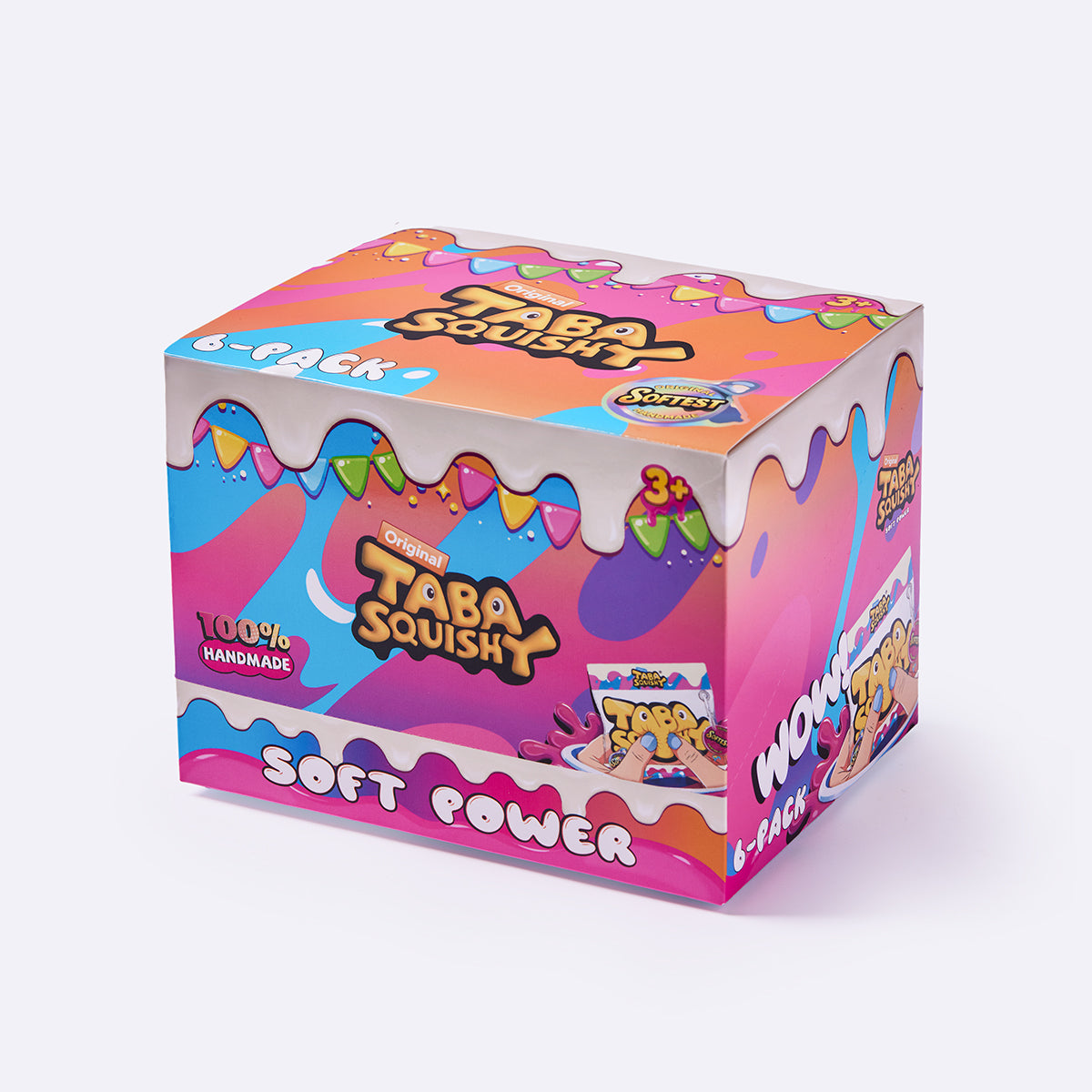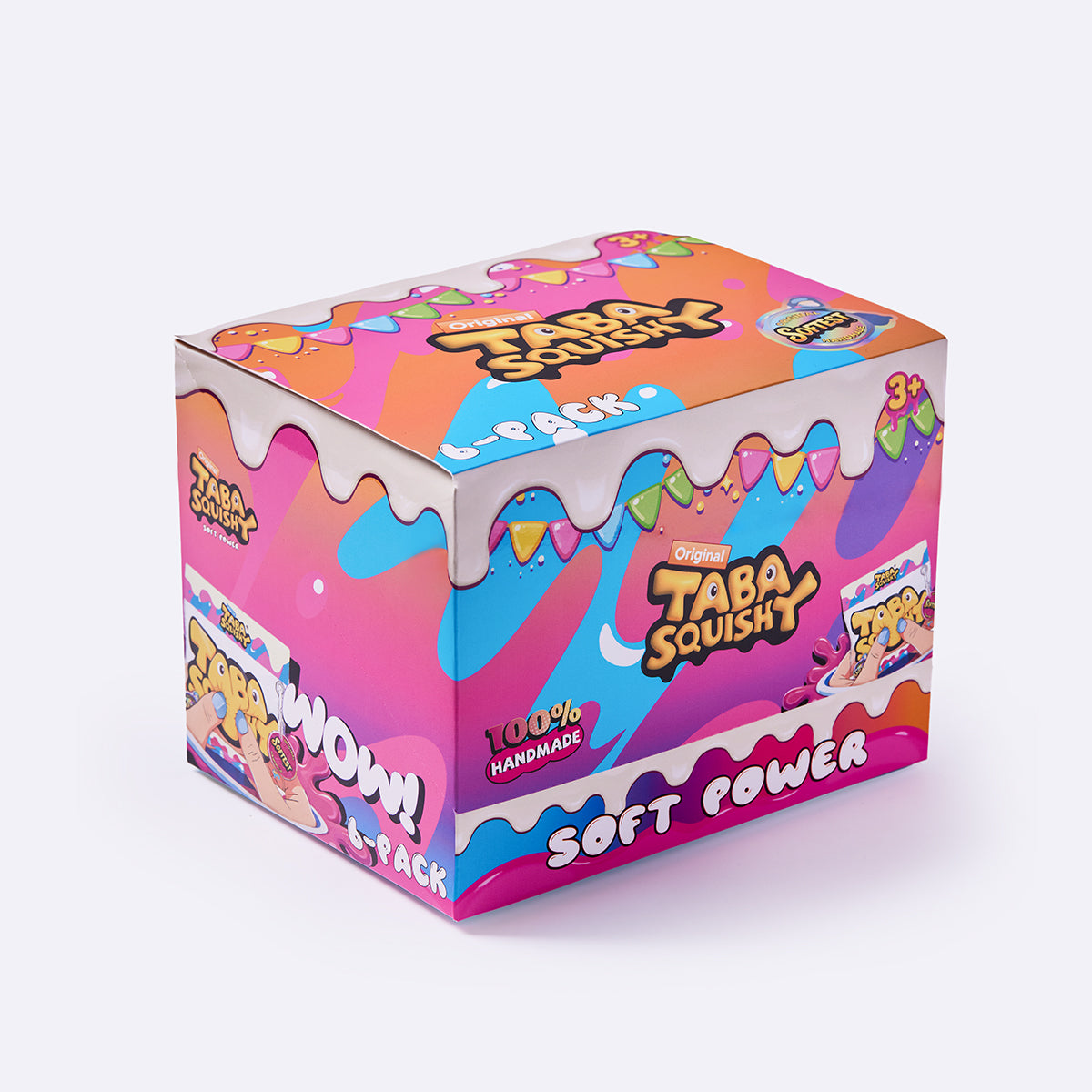 This 6-Pack Blind Box Set contains 6 randomly selected handmade taba squishy toys, each made from food-grade silicone with a soft, easy-to-squeeze texture, a smooth creamy feel, and a slow rebound for deep relaxation — perfect for squeezing, squishing, and stress relief.