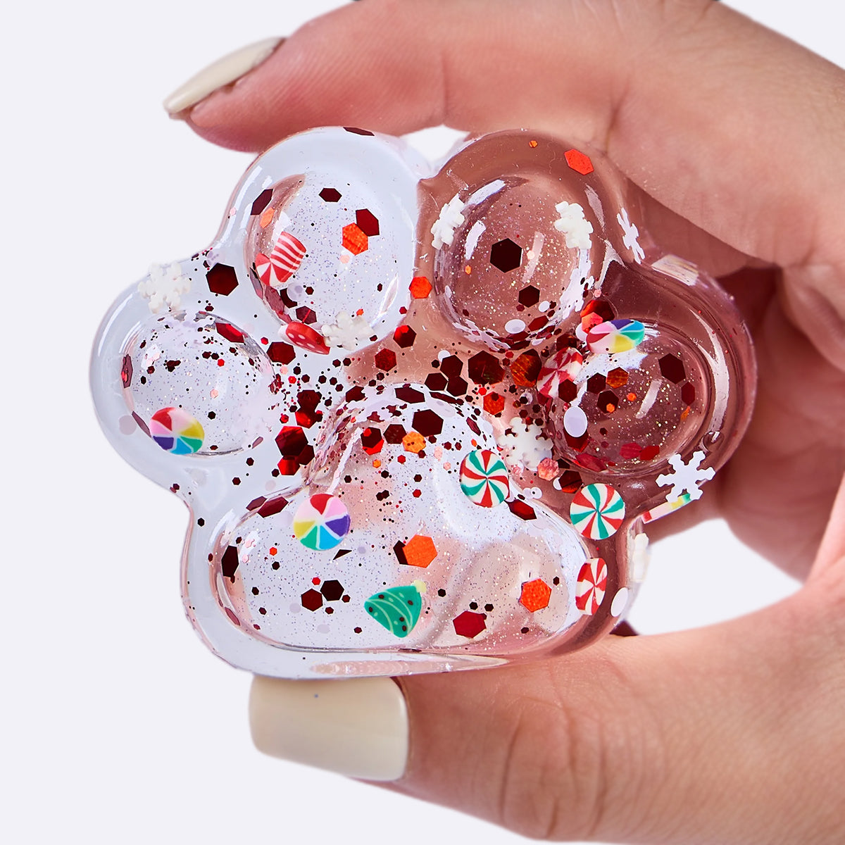 This handmade red sprinkle clear paw taba squishy made from food-grade silicone, features a soft, easy-to-squeeze texture with a smooth, creamy feel and slow rebound for deep relaxation, which is a perfect stress-relief toy for squeezing and squishing. With its vibrant colors and cute design, it comes elegantly packaged, perfect gift option to anyone you loved. Lightweight and portable, it’s perfect for stress relief on the go and can also be used as a fun keychain or backpack decoration.