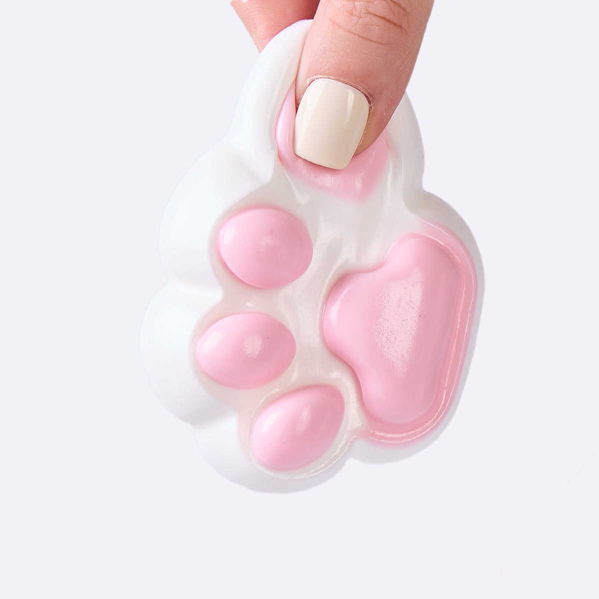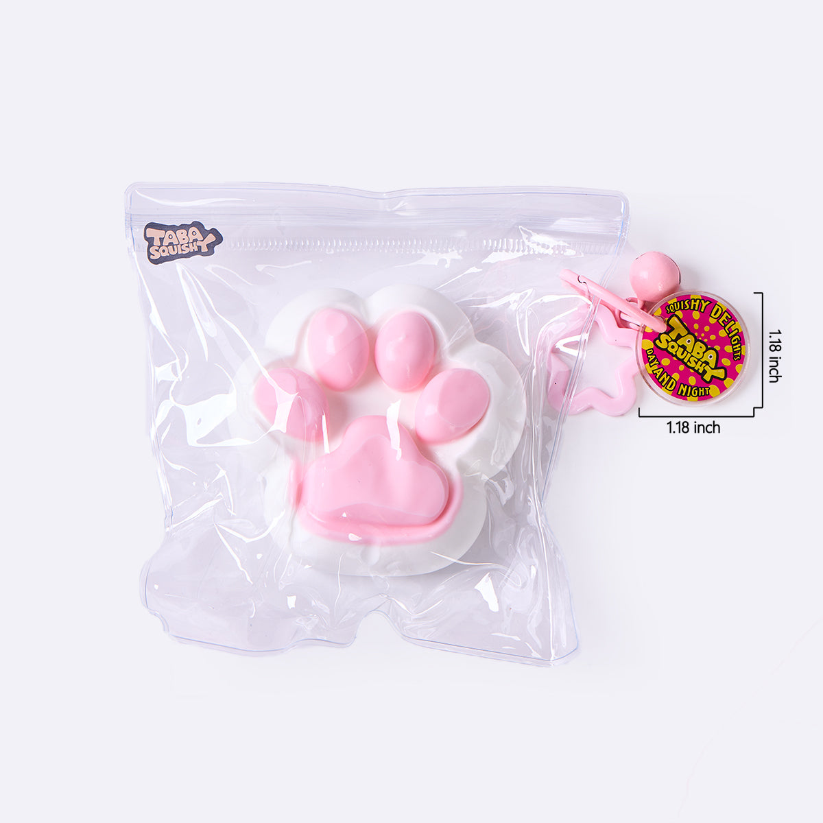 This handmade 100g white-pink paw taba squishy made from food-grade silicone, features a soft, easy-to-squeeze texture with a smooth, creamy feel and slow rebound for deep relaxation, which is a perfect stress-relief toy for squeezing and squishing. With its vibrant colors and cute design, it comes elegantly packaged, perfect gift option to anyone you loved. Lightweight and portable, it’s perfect for stress relief on the go and can also be used as a fun keychain or backpack decoration.