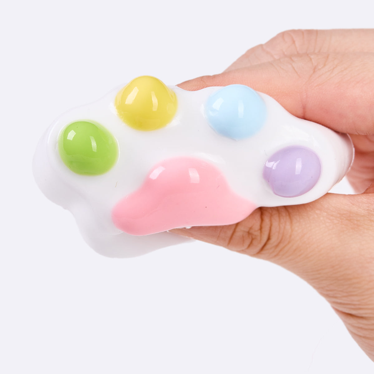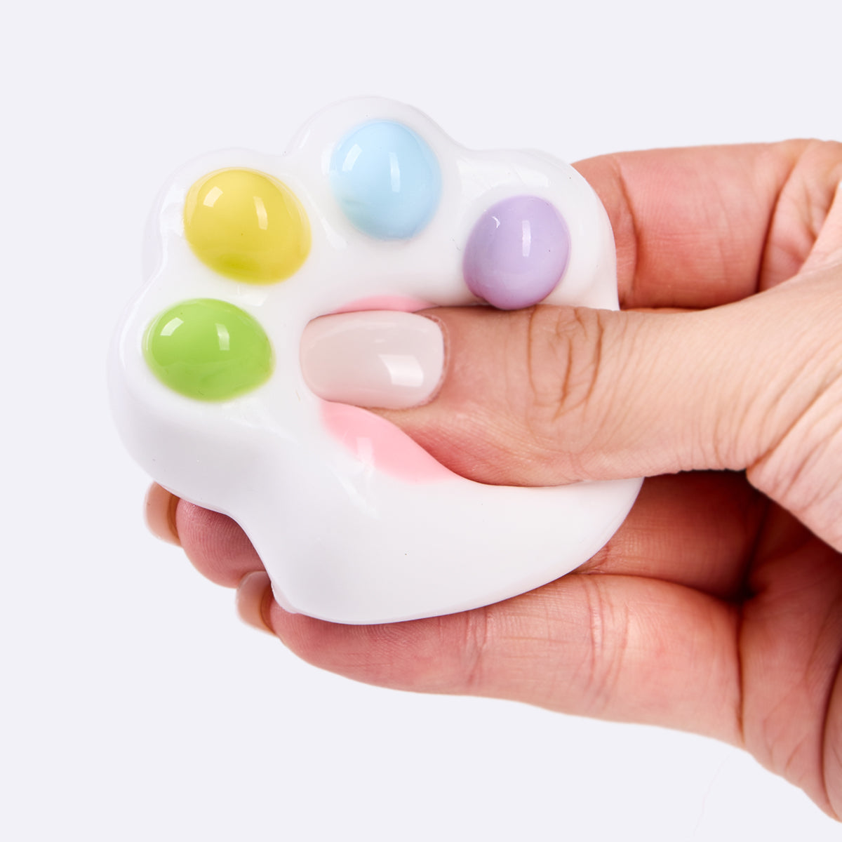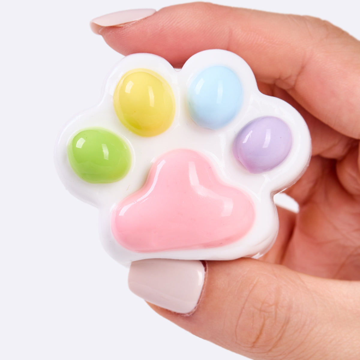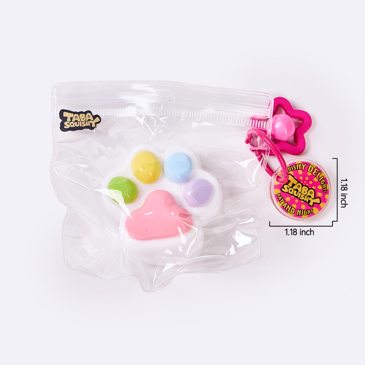 This handmade 62g white-colorful paw taba squishy made from food-grade silicone, features a soft, easy-to-squeeze texture with a smooth, creamy feel and slow rebound for deep relaxation, which is a perfect stress-relief toy for squeezing and squishing. With its vibrant colors and cute design, it comes elegantly packaged, perfect gift option to anyone you loved. Lightweight and portable, it’s perfect for stress relief on the go and can also be used as a fun keychain or backpack decoration.
