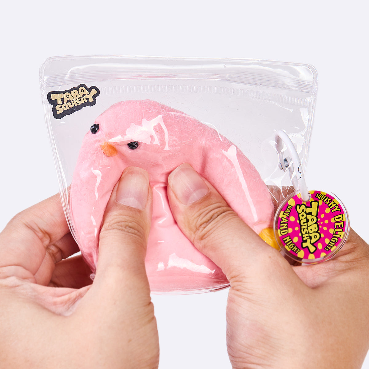 This handmade 90g pink chick taba squishy made from food-grade silicone, features a soft, easy-to-squeeze texture with a smooth, creamy feel and slow rebound for deep relaxation, which is a perfect stress-relief toy for squeezing and squishing. With its vibrant colors and cute design, it comes elegantly packaged, perfect gift option to anyone you loved. Lightweight and portable, it’s perfect for stress relief on the go and can also be used as a fun keychain or backpack decoration.
