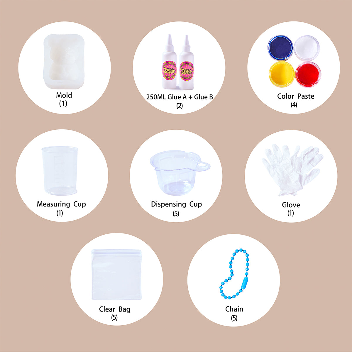 Our DIY butter bear squishy making kit, the all-in-one solution for crafting your own squishy. Dive into the therapeutic world of squishy making. The act of mixing and pouring can help reduce stress, making this kit not just a fun activity but a great way to unwind after a long day.