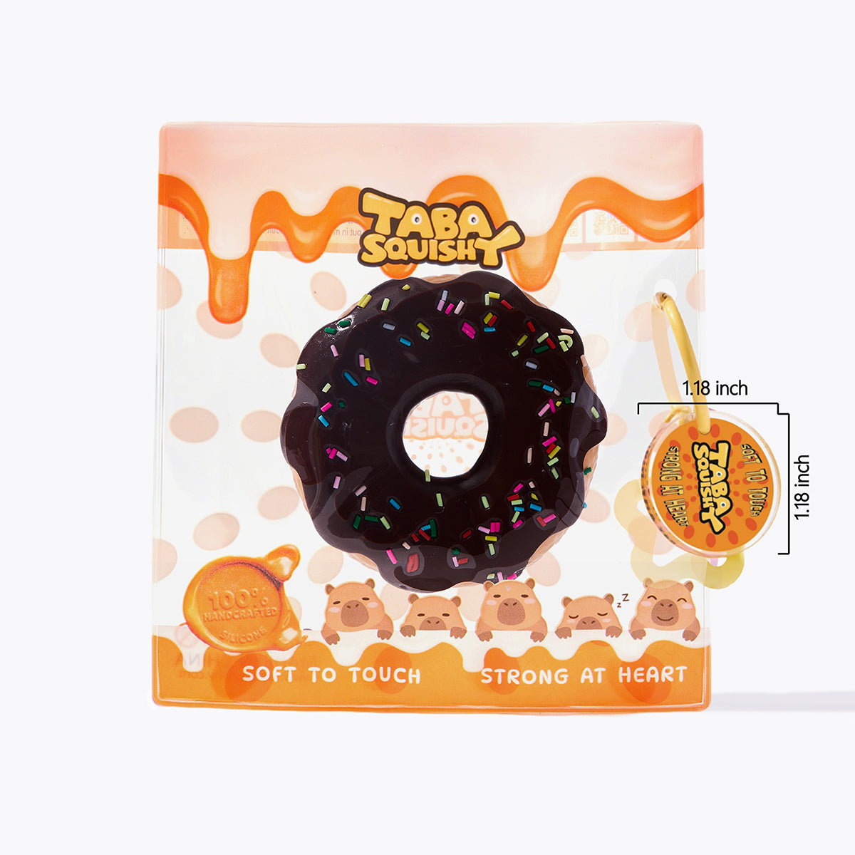 This handmade choco donut taba squishy made from food-grade silicone, features a soft, easy-to-squeeze texture with a smooth, creamy feel and slow rebound for deep relaxation, which is a perfect stress-relief toy for squeezing and squishing. With its vibrant colors and cute design, it comes elegantly packaged, perfect gift option to anyone you loved. Lightweight and portable, it’s perfect for stress relief on the go and can also be used as a fun keychain or backpack decoration.