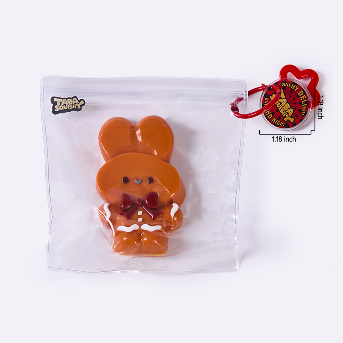 This handmade gingerbread bunny taba squishy made from food-grade silicone, features a soft, easy-to-squeeze texture with a smooth, creamy feel and slow rebound for deep relaxation, which is a perfect stress-relief toy for squeezing and squishing. With its vibrant colors and cute design, it comes elegantly packaged, perfect gift option to anyone you loved. Lightweight and portable, it’s perfect for stress relief on the go and can also be used as a fun keychain or backpack decoration.