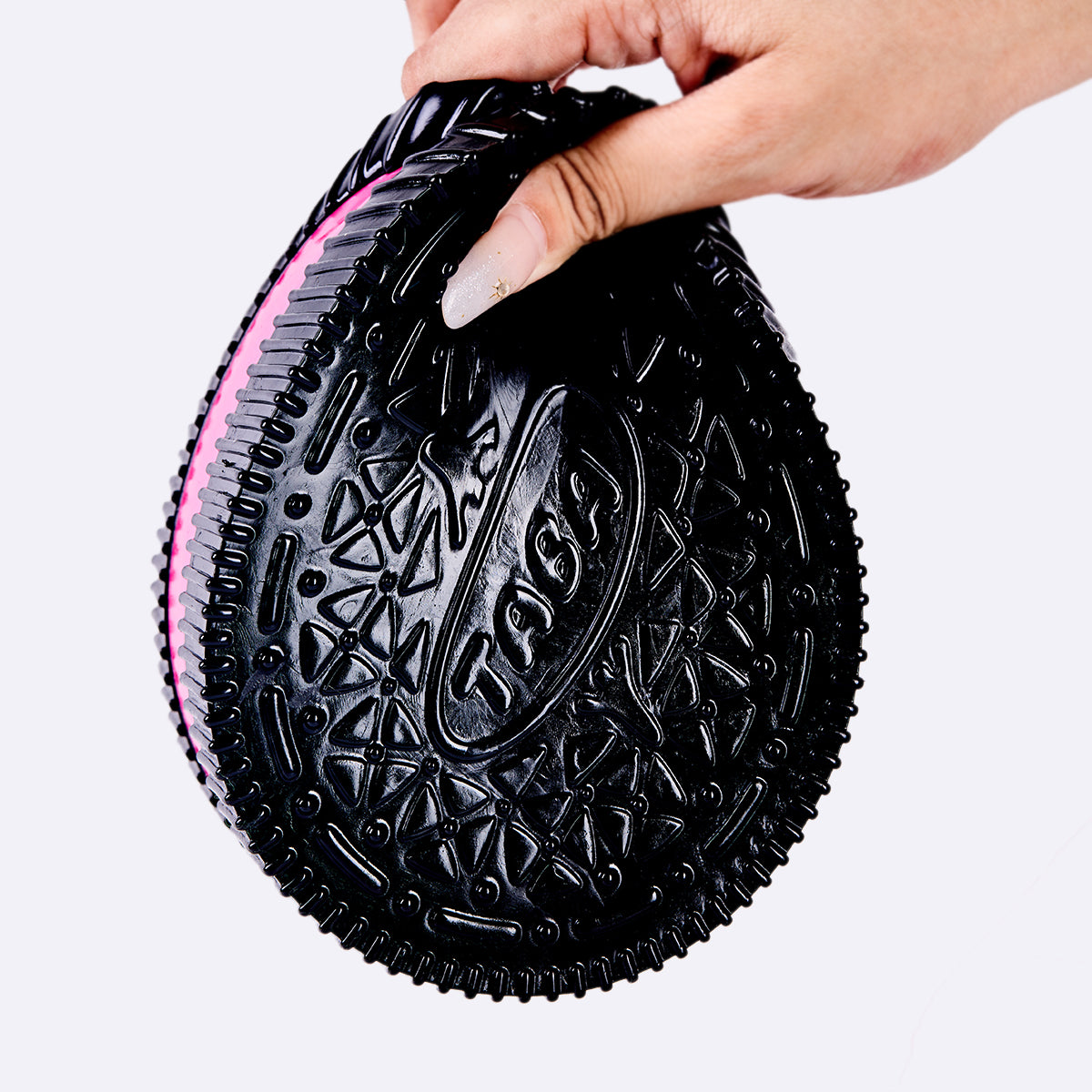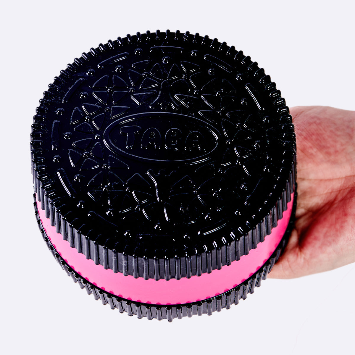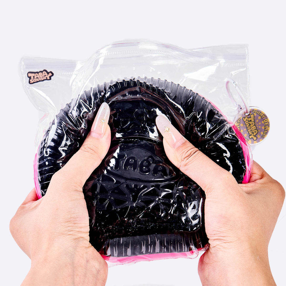 This handmade jumbo black-fuchsia sandwich cookie taba squishy made from food-grade silicone, features a soft, easy-to-squeeze texture with a smooth, creamy feel and slow rebound for deep relaxation, which is a perfect stress-relief toy for squeezing and squishing. With its vibrant colors and cute design, it comes elegantly packaged, perfect gift option to anyone you loved. Lightweight and portable, it’s perfect for stress relief on the go and can also be used as a fun keychain or backpack decoration.