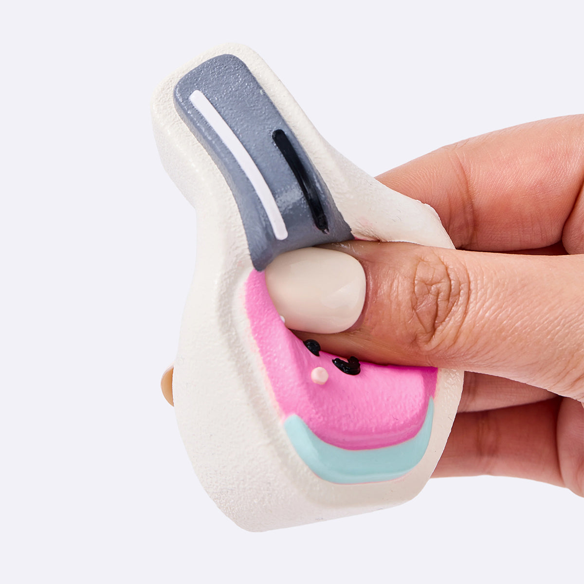 This handmade pink nail polish taba squishy made from food-grade silicone, features a soft, easy-to-squeeze texture with a smooth, creamy feel and slow rebound for deep relaxation, which is a perfect stress-relief toy for squeezing and squishing. With its vibrant colors and cute design, it comes elegantly packaged, perfect gift option to anyone you loved. Lightweight and portable, it’s perfect for stress relief on the go and can also be used as a fun keychain or backpack decoration.