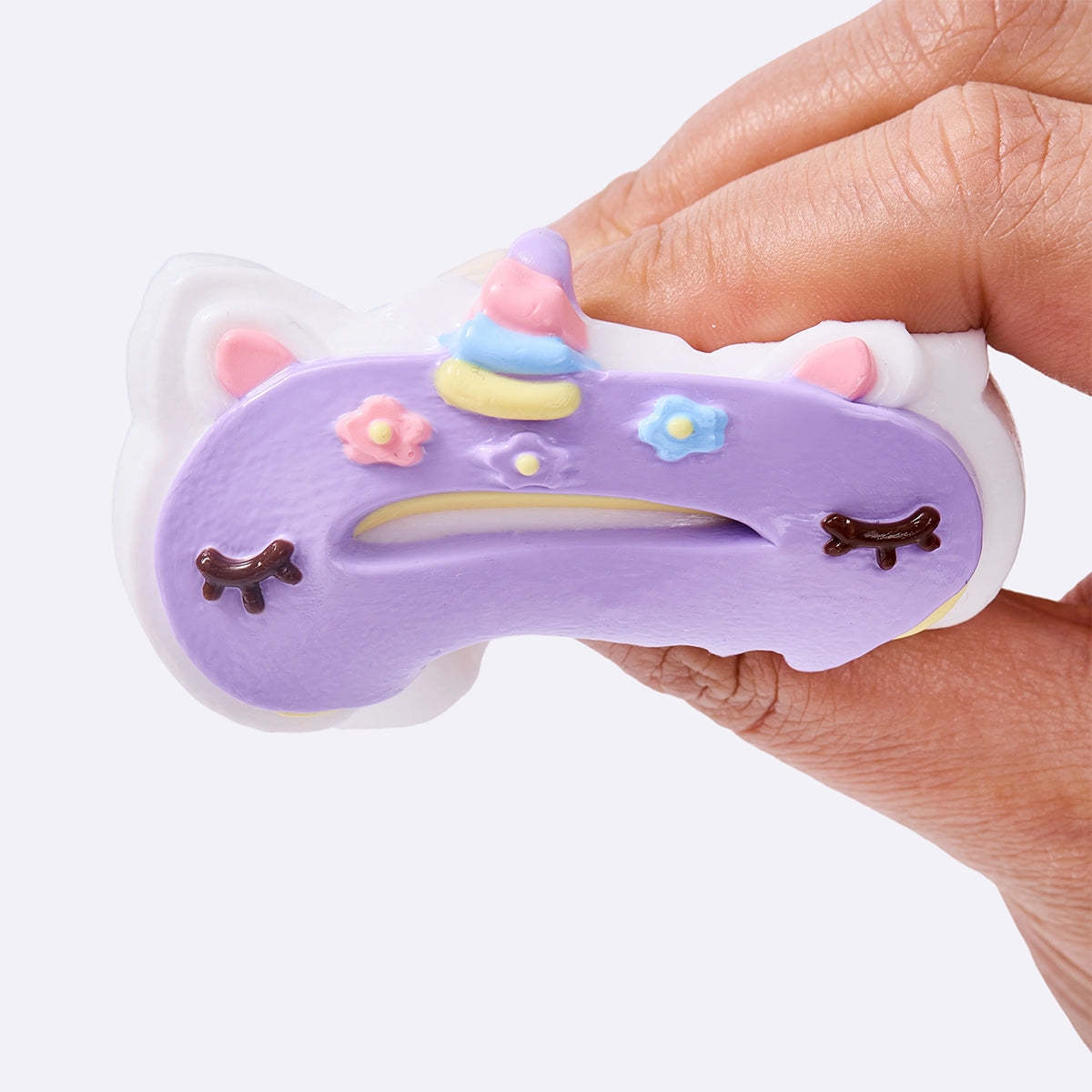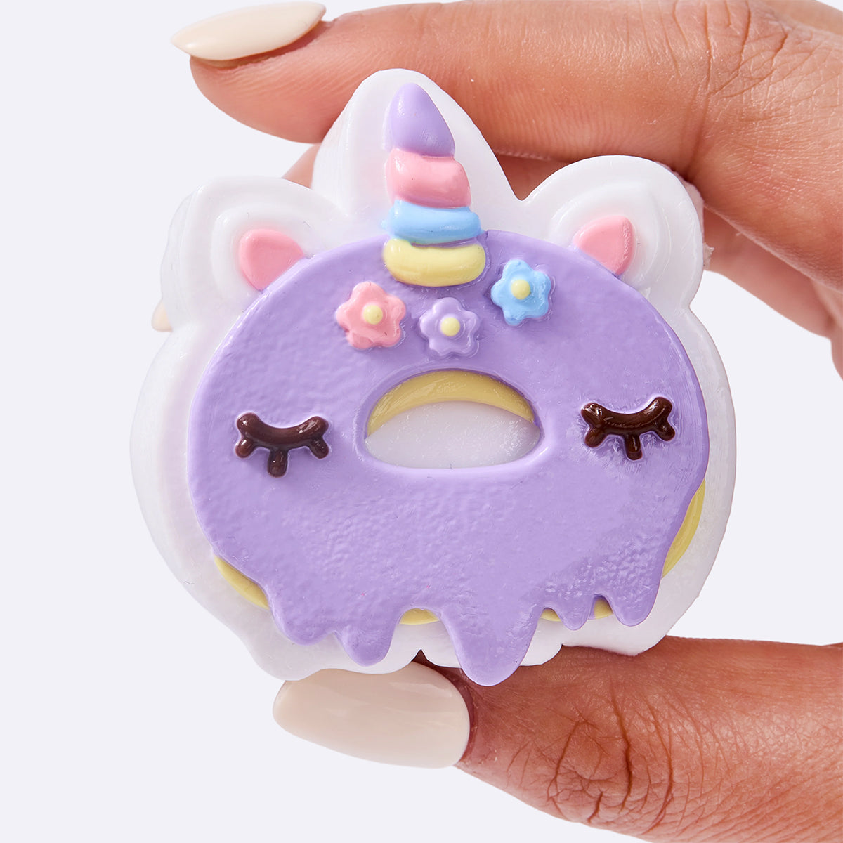 This handmade purple unicorn donut taba squishy made from food-grade silicone, features a soft, easy-to-squeeze texture with a smooth, creamy feel and slow rebound for deep relaxation, which is a perfect stress-relief toy for squeezing and squishing. With its vibrant colors and cute design, it comes elegantly packaged, perfect gift option to anyone you loved. Lightweight and portable, it’s perfect for stress relief on the go and can also be used as a fun keychain or backpack decoration.