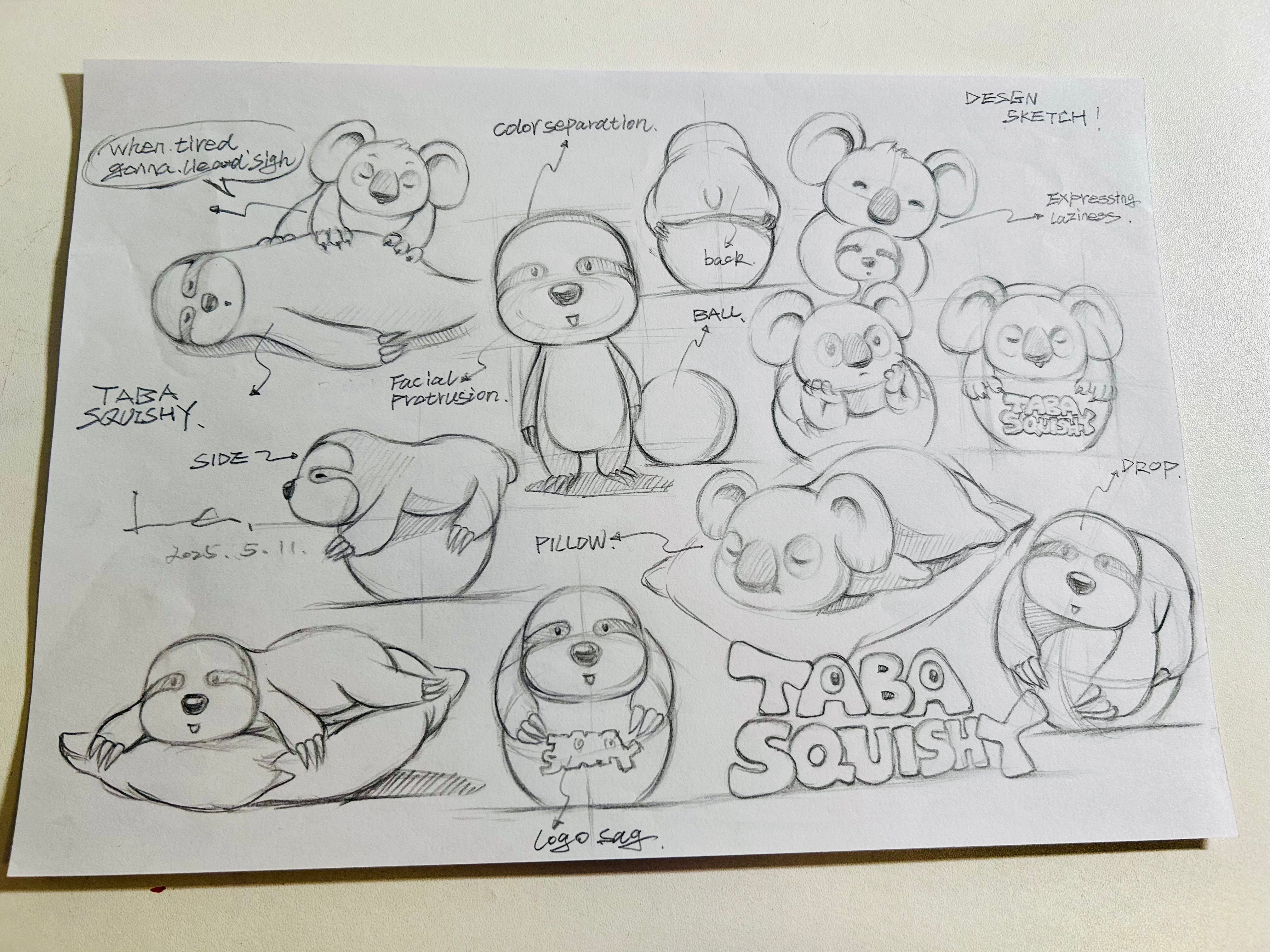 For this creation, Liu drew directly from the natural charm of sloths and koalas — creatures that embody unhurried grace and effortless ease. The result is an IP design that feels instantly recognizable, deeply comforting, and perfectly aligned with our brand’s mission: to create soft spaces in a hard world.