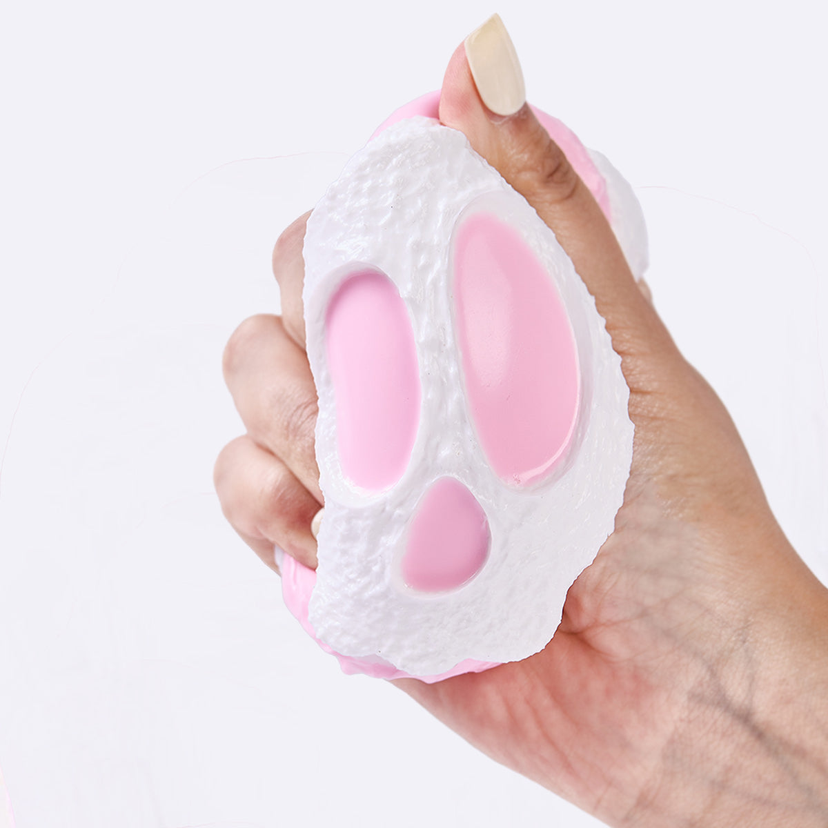 This handmade white-pink skull sandwich cookie taba squishy made from food-grade silicone, features a soft, easy-to-squeeze texture with a smooth, creamy feel and slow rebound for deep relaxation, which is a perfect stress-relief toy for squeezing and squishing. With its vibrant colors and cute design, it comes elegantly packaged, perfect gift option to anyone you loved. Lightweight and portable, it’s perfect for stress relief on the go and can also be used as a fun keychain or backpack decoration.