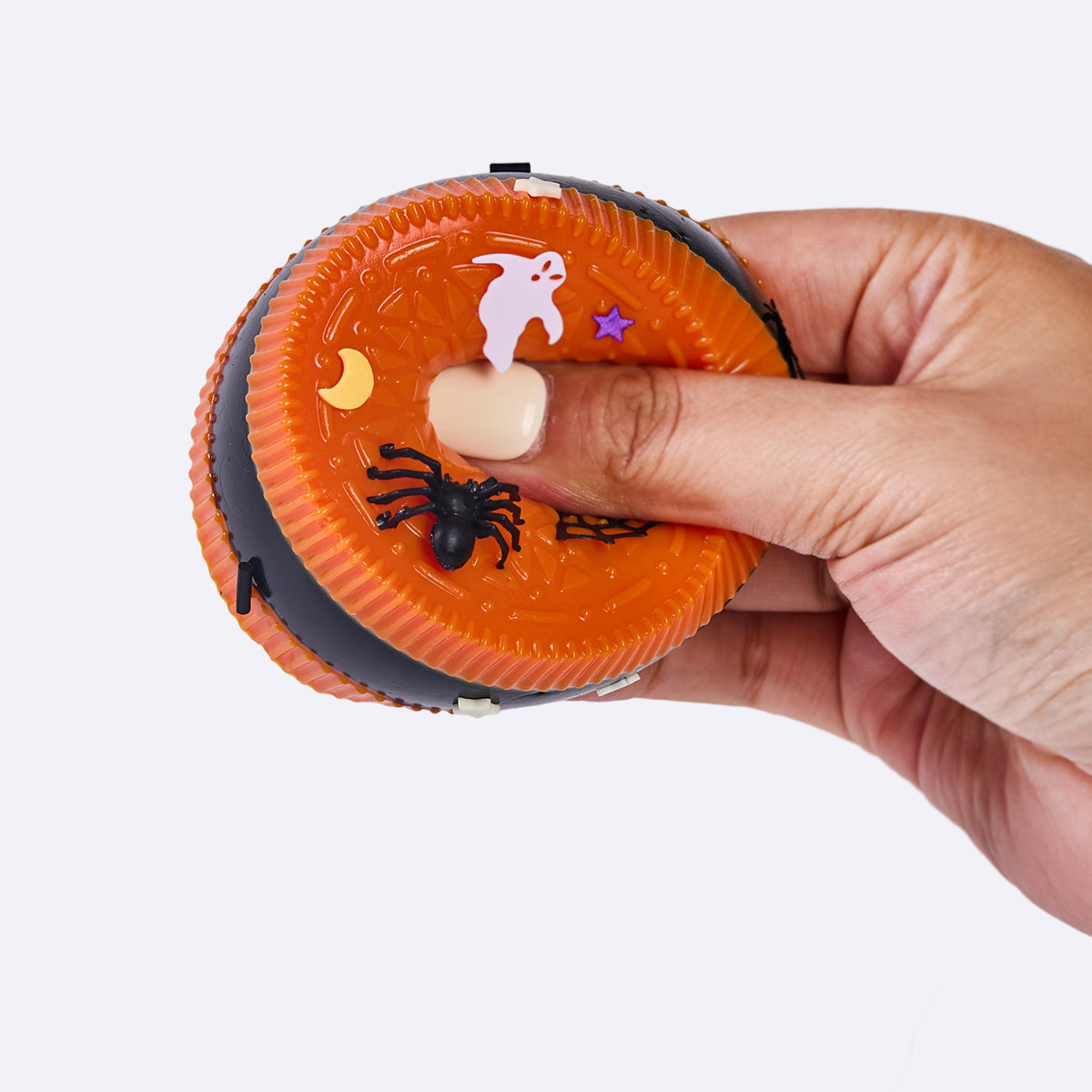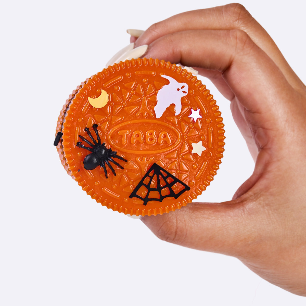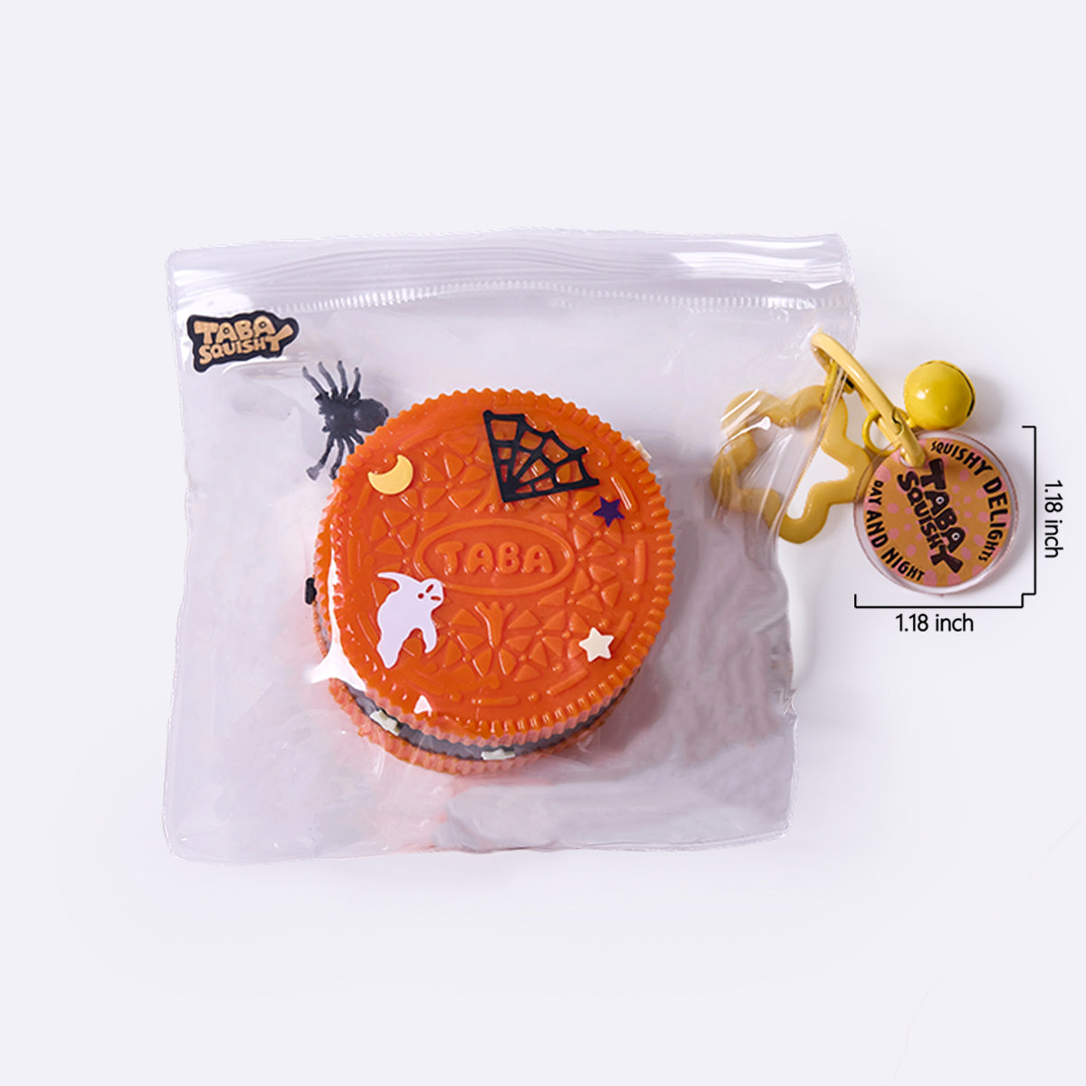 This handmade 110g orange-black sandwich cookie taba squishy made from food-grade silicone, features a soft, easy-to-squeeze texture with a smooth, creamy feel and slow rebound for deep relaxation, which is a perfect stress-relief toy for squeezing and squishing. With its vibrant colors and cute design, it comes elegantly packaged, perfect gift option to anyone you loved. Lightweight and portable, it’s perfect for stress relief on the go and can also be used as a fun keychain or backpack decoration.